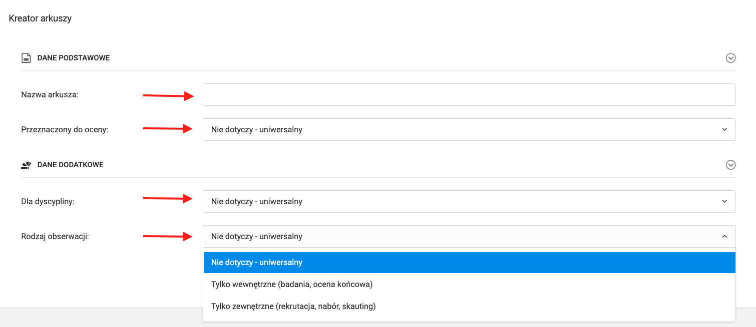Om bij de evaluatiemaker te komen selecteer je tabbladen uit het linkermenu club evaluaties en observaties formulieren evaluatieformulier wizard. De eerste stap bij het maken van een nieuw formulier is het invoeren van een naam en het kiezen van het type gebruiker dat geëvalueerd gaat worden. Je kunt een universeel, speler-, trainer- of medewerker evaluatieformulier maken.